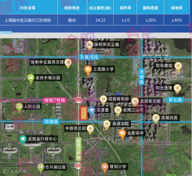 体量袖珍,地块位于华润紫云府、龙湖天璞北侧,瑶海主城区,紧邻东一环路,距离地铁2号线东五里井站直线距离约550米,配套较为成熟。