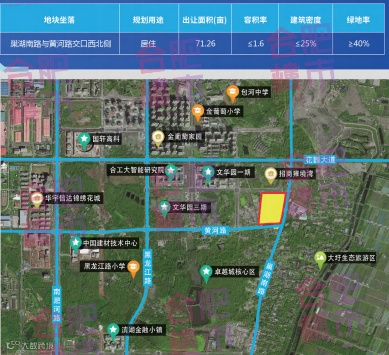 地块位于包河区巢湖南路以西、黄河路以北,71.26亩居住地,容积率 ≤1.6,竞买保证金1.6亿。
