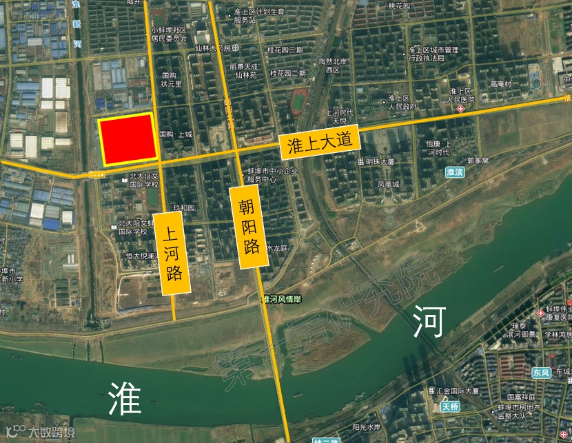 该地块位于蚌埠市淮上区,淮河以北位置,紧邻国购广场,与北大培文国际学校一路之隔,距离淮上区政府也仅1.6公里,整个淮上区的配套设施均沿着淮上大道,能满足周边的民众生活。