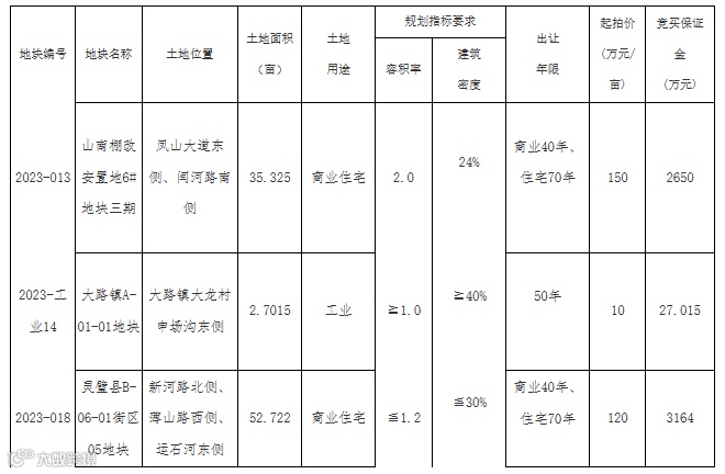 1.2023-013号地块(山南棚改安置地6#地块三期)、2023-018号地块(灵璧县B-06-01街区05地块) 申请竞买人应为具有房地产开发资质的企业,竞买人在报名时须提交购地资金为来源合规的自有资金的承诺及银行出具的资信证明。