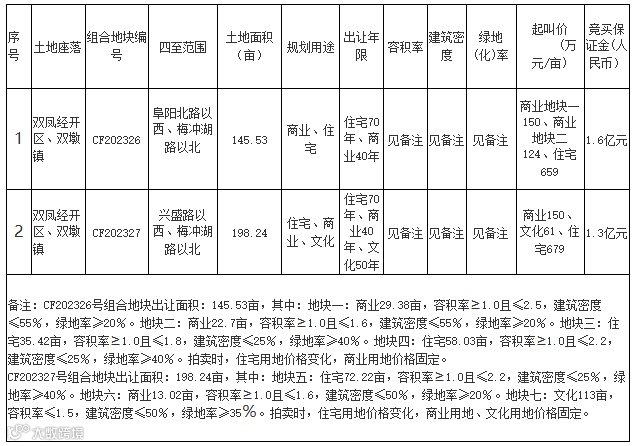发展,竞买人在办理竞买登记手续时, CF202326号、CF202327号2组合用地需按长丰县人民政府批复的双墩、双凤片区城市更新项目统一规划、整体组合出让、统一报名、统一竞得。同时,须提交已充分了解双墩、双凤片区城市更新项目总体情况及实施要求等书面材料。