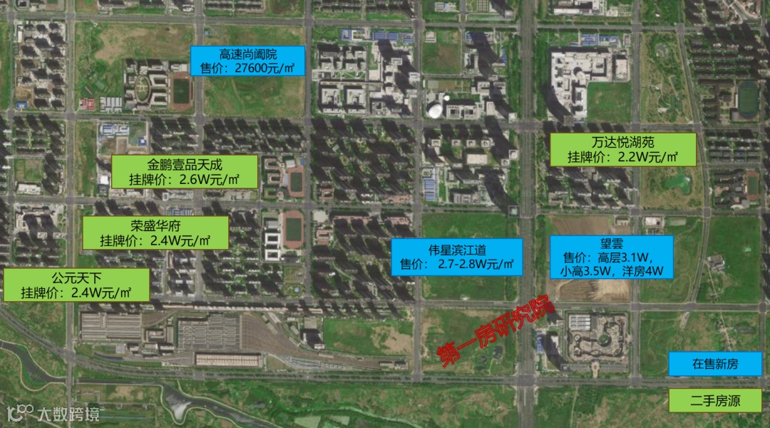 具体项目来看,街坊周边在售的主要是伟星滨江道和华润城建望雲项目,滨江道售价为2.7-2.8W/㎡,项目开盘就引爆市场,在销售过程中多次触发摇号。而望雲价格因业态不同,最高可达4W/㎡。二手房则大多在2.4-2.6W/㎡。