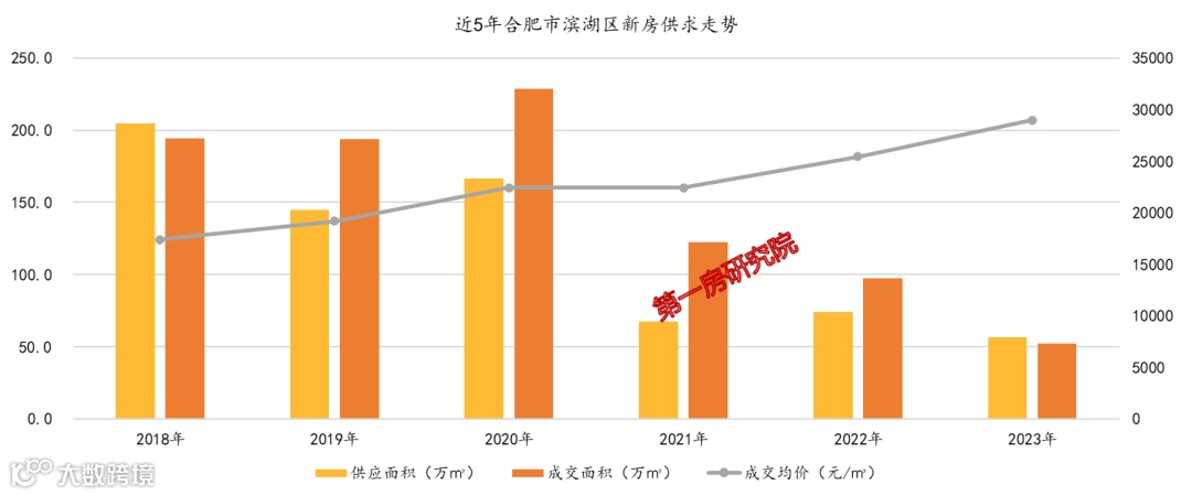 从市场来看的话,在2020年之后,市场成交量下滑明显,一方面由于大环境下行,另一方面也是由于滨湖整体供应不足,不过成交均价一路上扬,今年1-10月,成交均价已达到28973元/㎡。