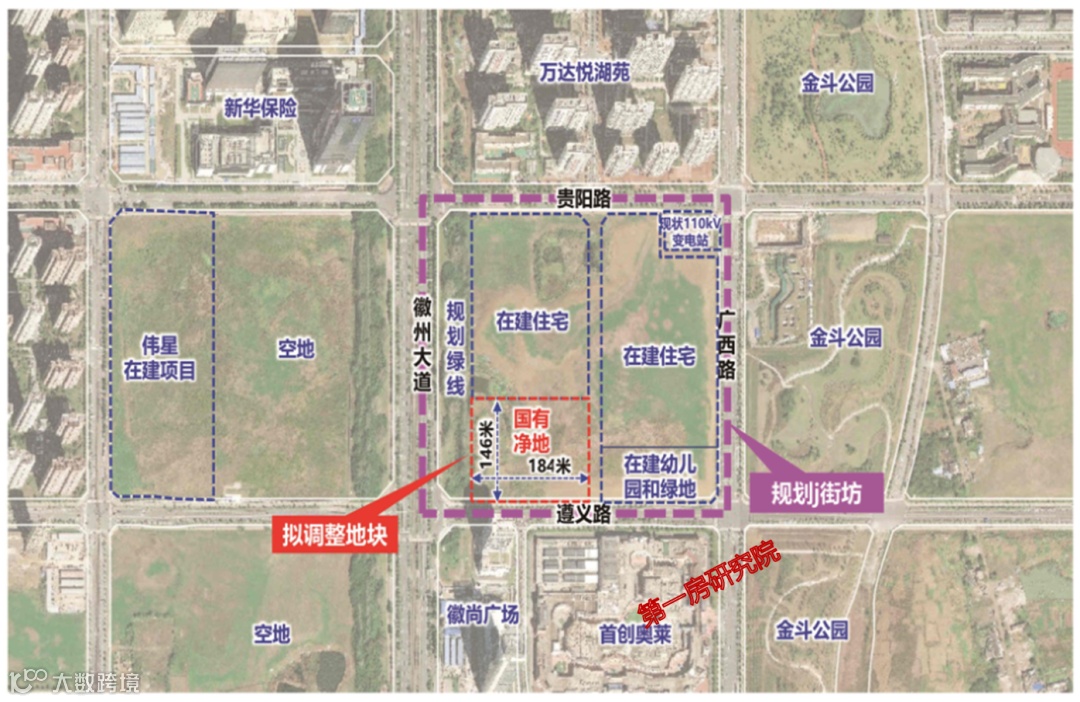 本次公示街坊地块位于徽州大道和遵义路交口东北角,原本属性为公共管理与公共服务用地,而经过调整后变为居住属性。地块周边配套完善、资源优质,区位优势明显,板块价值潜力巨大。