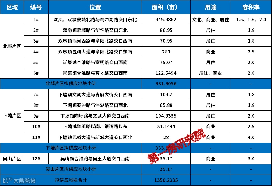 回看市场,长丰县今年预计出让12宗地共1350亩,主要分布在北城、下塘、岗集和吴山四个区域。
