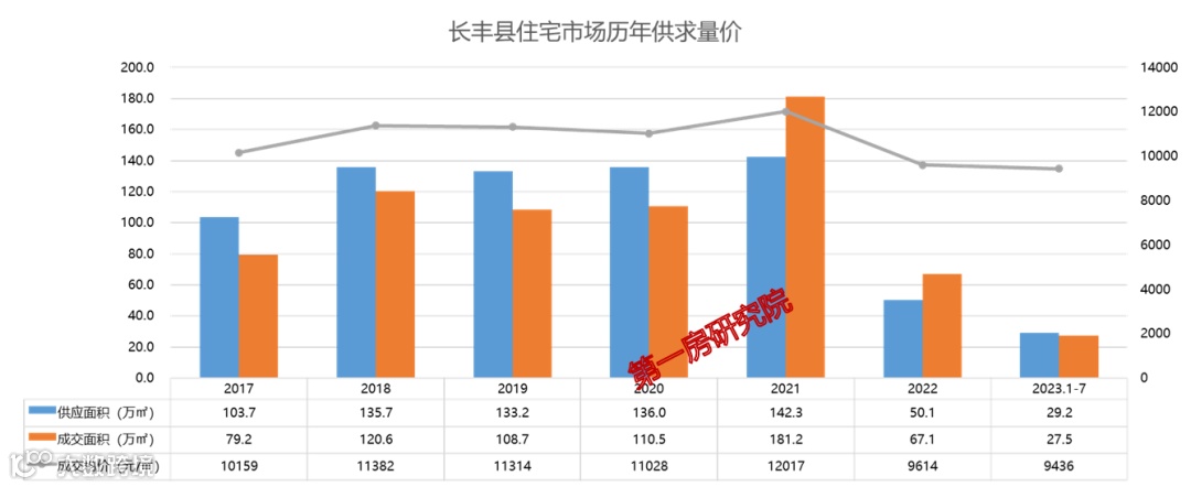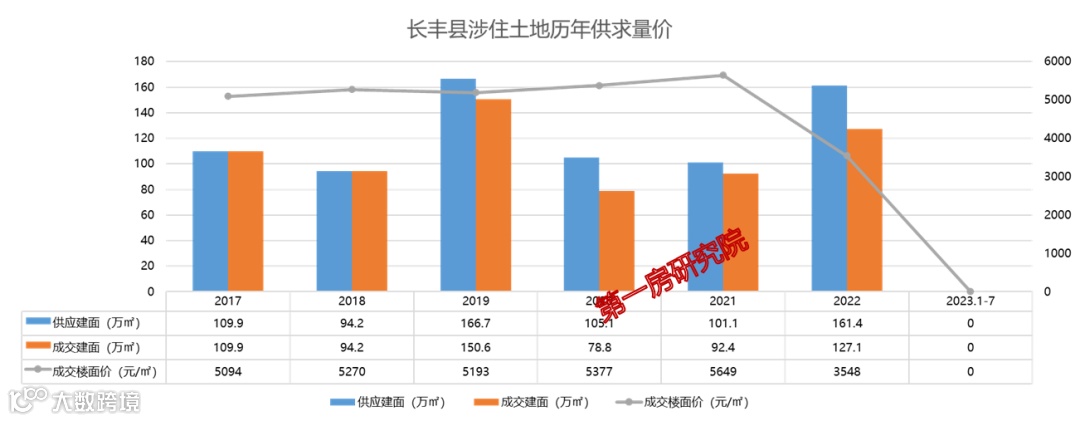 近6年长丰县年均供应126.1万㎡,年均成交108.8万㎡,供应成交率为86.3%。而今年到目前为止,长丰县尚未成交地块。