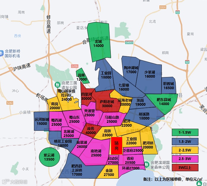 同时骆岗板块定位之高,已超原来的老城、政务、滨湖,这几大区域均在目前合肥售价排行中靠前,是目前合肥的天花板所在,因为这些区域都汇集了目前最优质的资源配套,价格基本都是接近三万。而作为定位高于这几大区域的骆岗,待其内部的交通通行便利,配套设施落成,所有优质资源汇集之后,这里的价值潜力可想而知。