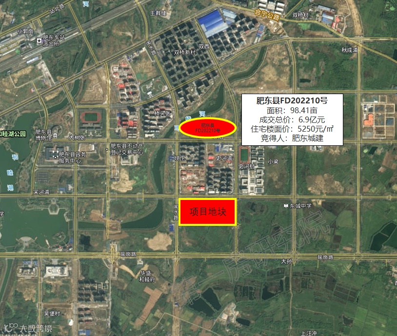 2022年5月19日,在距离该地块600米的正北方,成交了一宗地块,肥东城建以单价700万元/亩,总价68888.4万元的价格获取了肥东县FD202210号。那么如果肥东亿达地块真如小道消息所传,重新入市的话,你觉得会是什么价格呢?