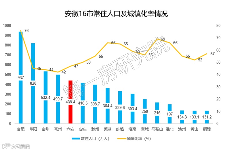 根据安徽省公布的第七次人口普查结果,六安市常住人口439.4万,位列全省第五位,城镇化率47%,从人口基数以及城镇化率来看,未来六安楼市还有较大发展空间。