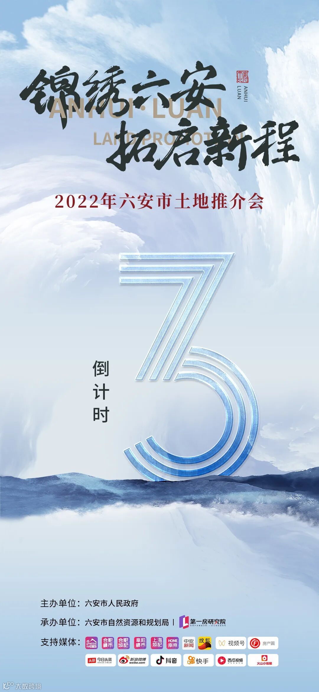 8月15日,由六安市人民政府主办,六安市自然资源和规划局、第一房研究院承办的“锦绣六安,拓启新程”2022年六安市土地推介会将隆重举行,到时将通过第一房抖音号、合肥楼市视频号等多平台对外直播。