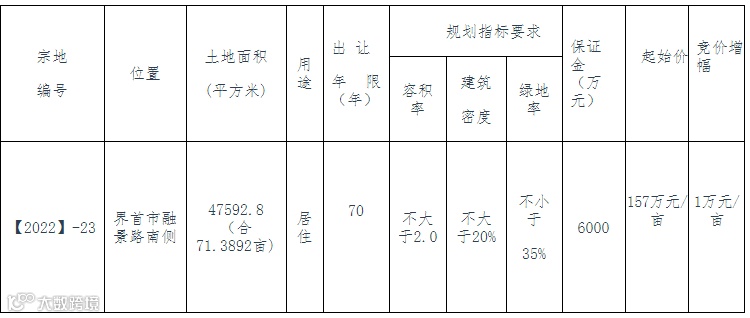 注意事项:1、土地竞买保证金须按时转入指定银行账户,延迟缴纳或缴错账户不能取得竞买资格。