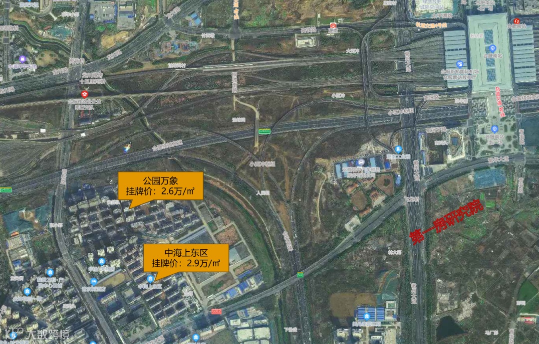 经开区JK202303号位于经开区繁华大道以北、西堤顶路以西,是骆岗中央公园旁时隔3年再次供应的居住地,面积约72.88亩,临近合肥南站,周边有中海上东区、公园万象两个刚刚交付的新小区,目前二手房挂牌均价2.6万-2.9万/㎡。