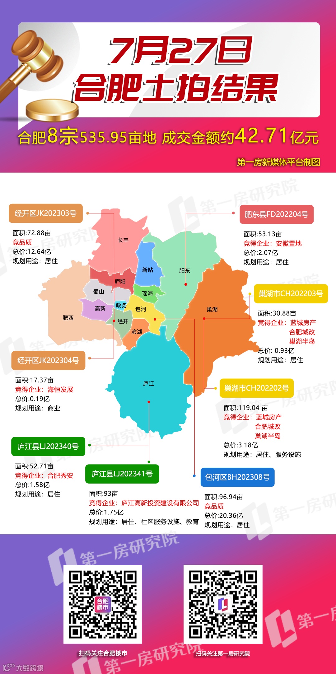 合肥热!今日8宗地成交42.7亿元,2宗地进入竞品质!