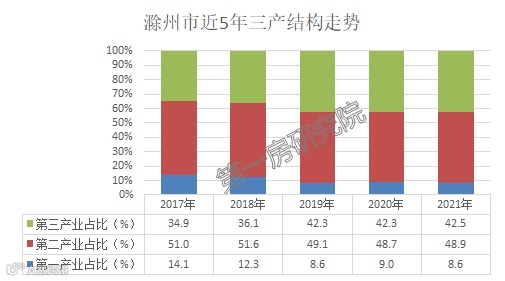 1、滁州市近来发展迅猛,已经一跃成为安徽省内经济第三大城市,三产比例持续优化。