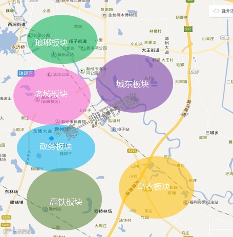我们根据板块价值和特征将滁州划分为六大板块,可明显发现,板块价值高、售价贵的区域主要集中在资源优渥、有极大提升潜力的区域,如老城区、政务等板块;而明显是刚需板块的特征是相对位置较远或者资源配套较差的区域,如城东、高铁等板块。