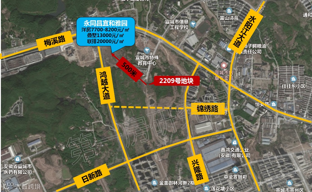地块所在区域在售项目较少,所以地块后期入市竞争环境相对较好。小板块内仅永同昌宜和雅园一个竞品项目,距离2209号地块直线距离约500米。
