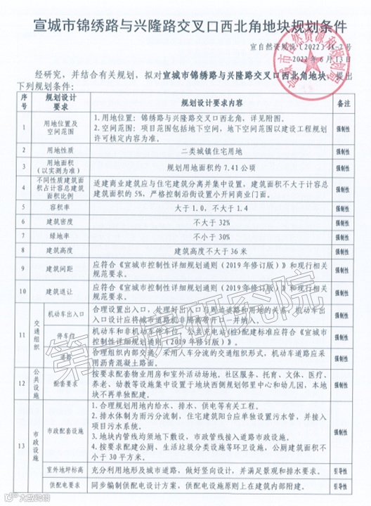 2022年8月18日,宣城市公共资源交易中心挂出城北片区1宗二类城镇住宅用地(2209号地块)!保证金截止时间2022年9月8日11:00时,若报名超过2家(含2家)采取公开拍卖方式,拍卖时间为2022年9月8日15:00时;若不足2家,则采取挂牌方式出让,同时竞买申请受理及竞买保证金缴纳时间将顺延至2022年9月16日15:00时,公开挂牌时间为2022年9月9日至2022年9月19日,挂牌截止时间为2022年9月19日15:00时。