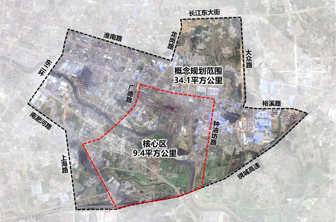 东部新中心以瑶海老工业区为核心,规划范围横跨瑶海、包河、肥东三地,总面积34.1平方公里。其中,瑶海区17.7平方公里,包河区10.1平方公里,肥东县6.3平方公里。核心区规划范围东起钟油坊路,西至广德路,南临南淝河路,北到裕溪路,总面积9.4平方公里。总体定位是华东青年中心、安徽双创中心、合肥东部中心。