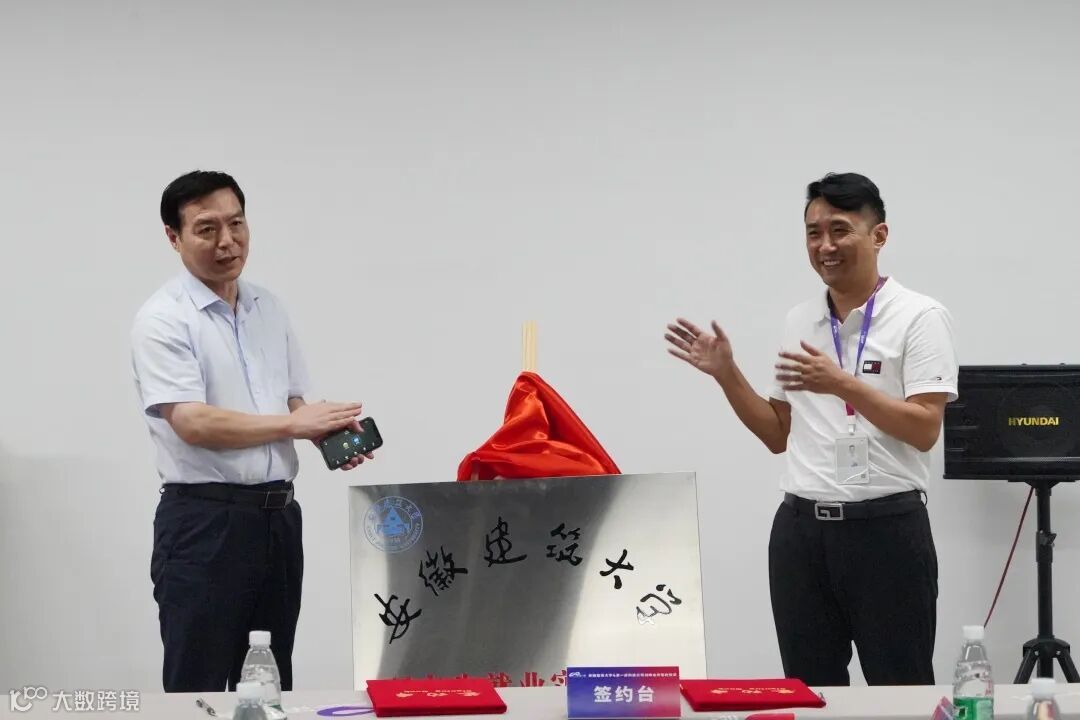 安徽建筑大学党委副书记、校长黄显怀,第一房科技公司创始人兼董事长王仁华,为安徽建筑大学研究生院教育实践基地揭牌