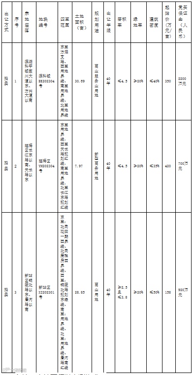 1、出让地块具体规划指标以自然资源和规划部门出具的正式文件为准,土地准确面积以测绘部门实测为准,地块起始价不含契税、印花税。地块具体出让信息以出让文件为准。