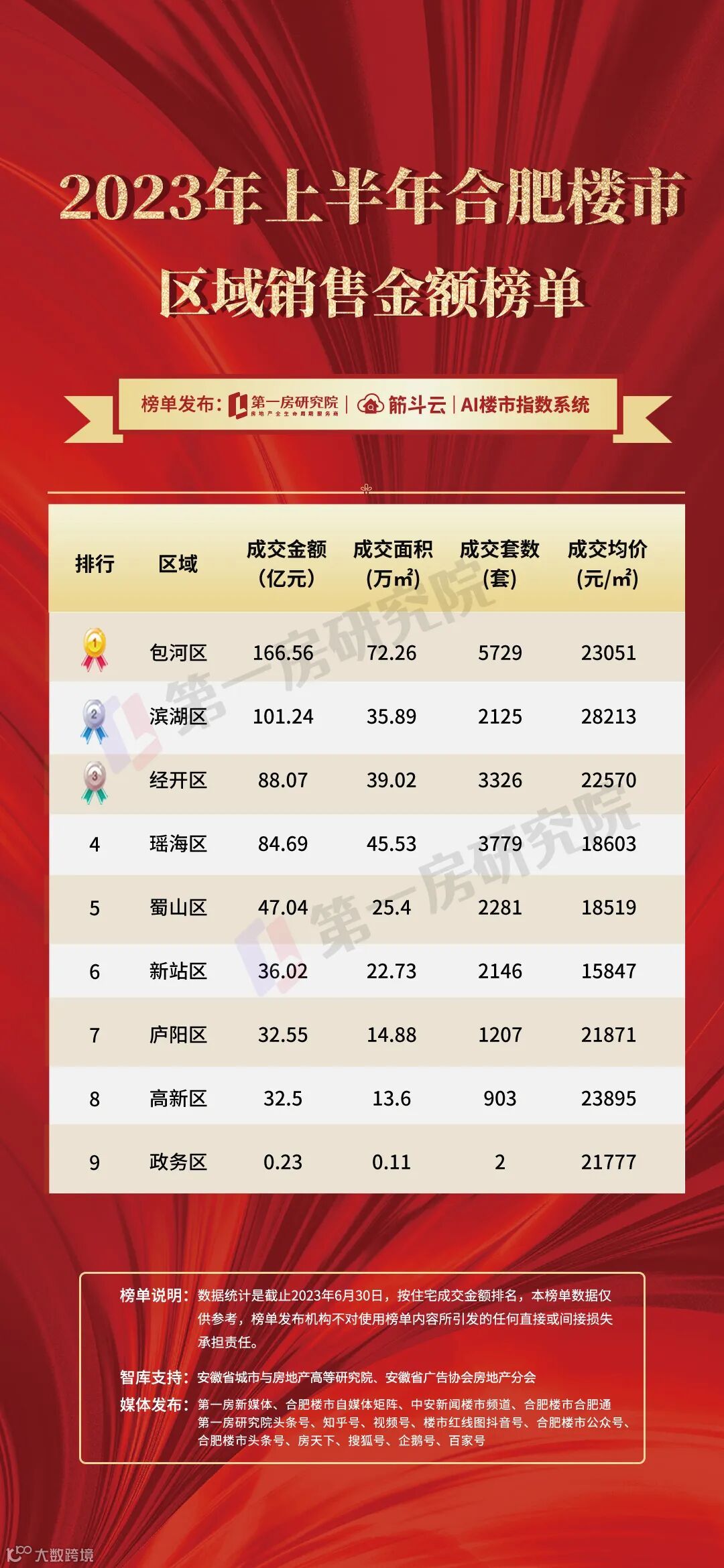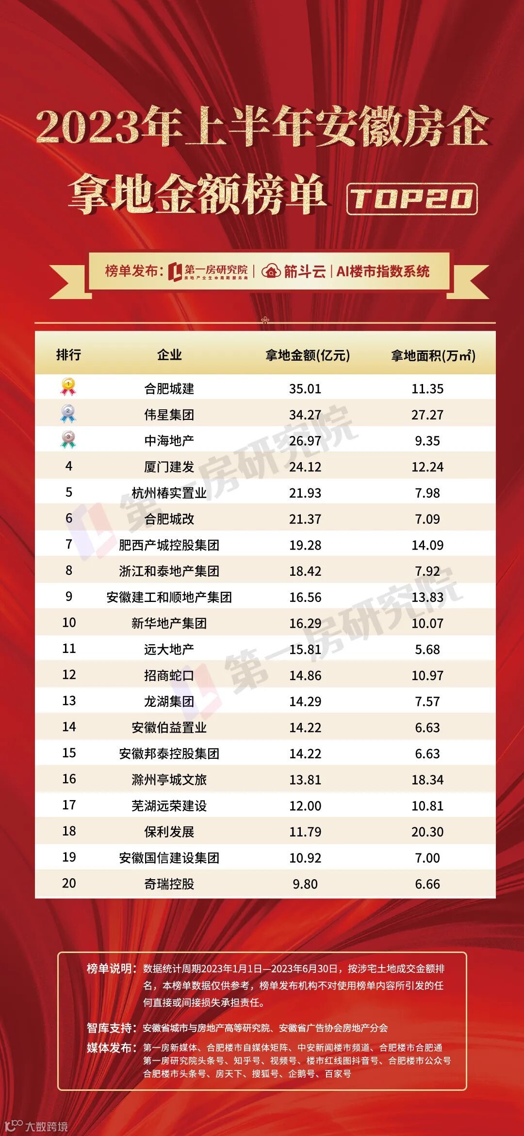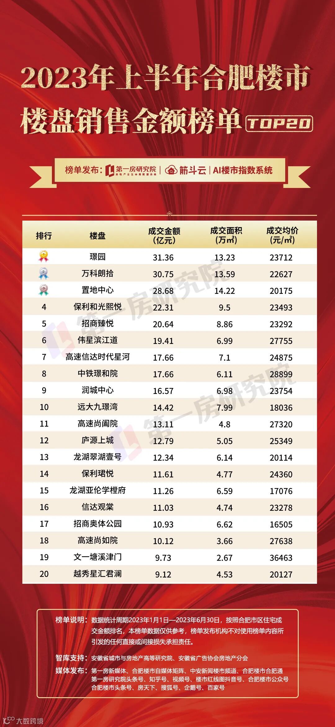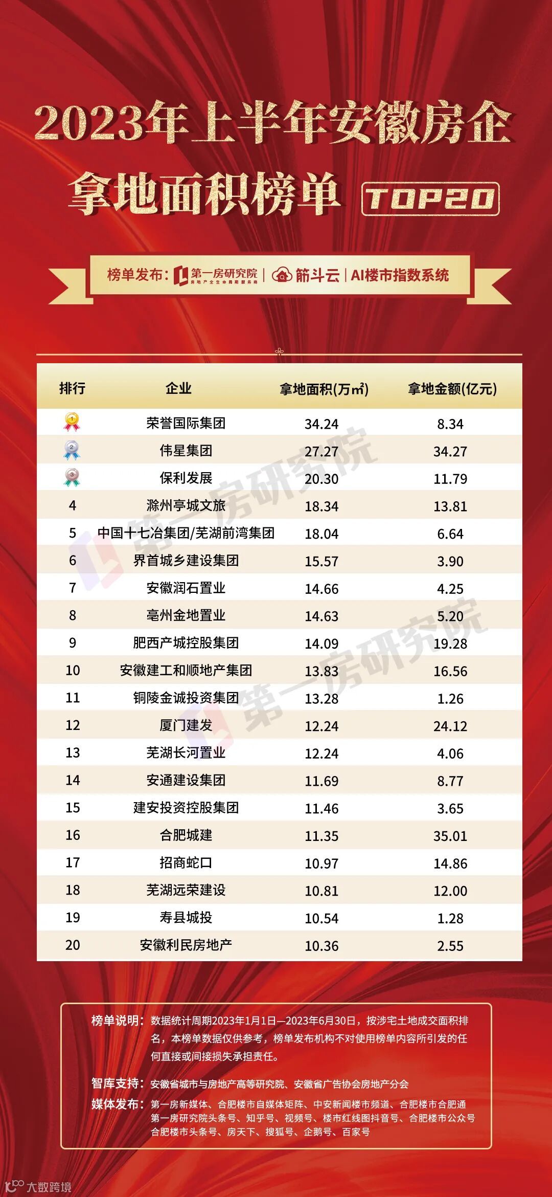 2023年上半年合肥楼市及安徽土地榜单发布,保利荣登房企销冠!