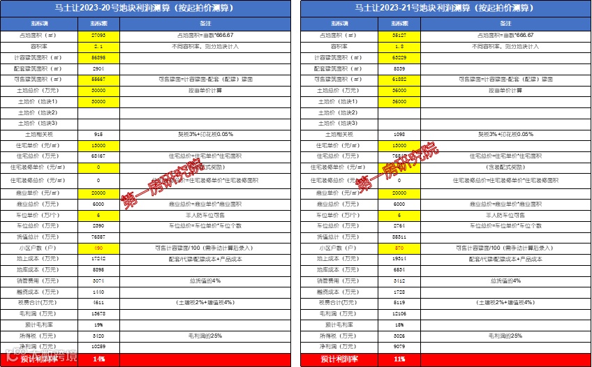 根据测算,马土让2023-20号地块利润率为14%,马土让2023-21号地块利润率为11%,具有一定的利润空间。