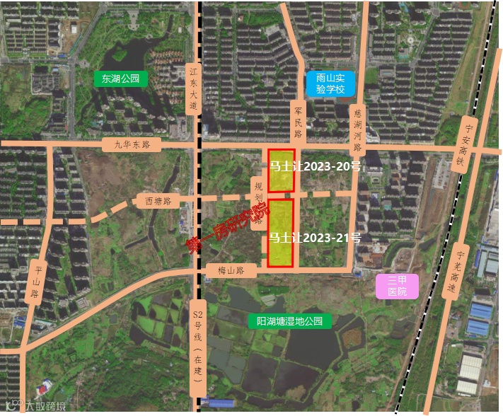 马土让2023-21号地块北至西塘路,西至规划六路,南至梅山路,东至军民路,面积约52.7亩,1.0≤容积率≤1.8。