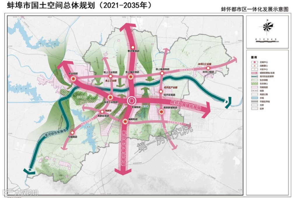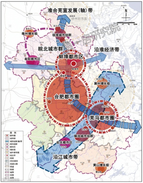 蚌埠地处沿淮城市群,定位为皖北中心城市,享合肥经济辐射。依托产业、交通,目前发展向产业集群化 、知识经济的中心城市过渡。
