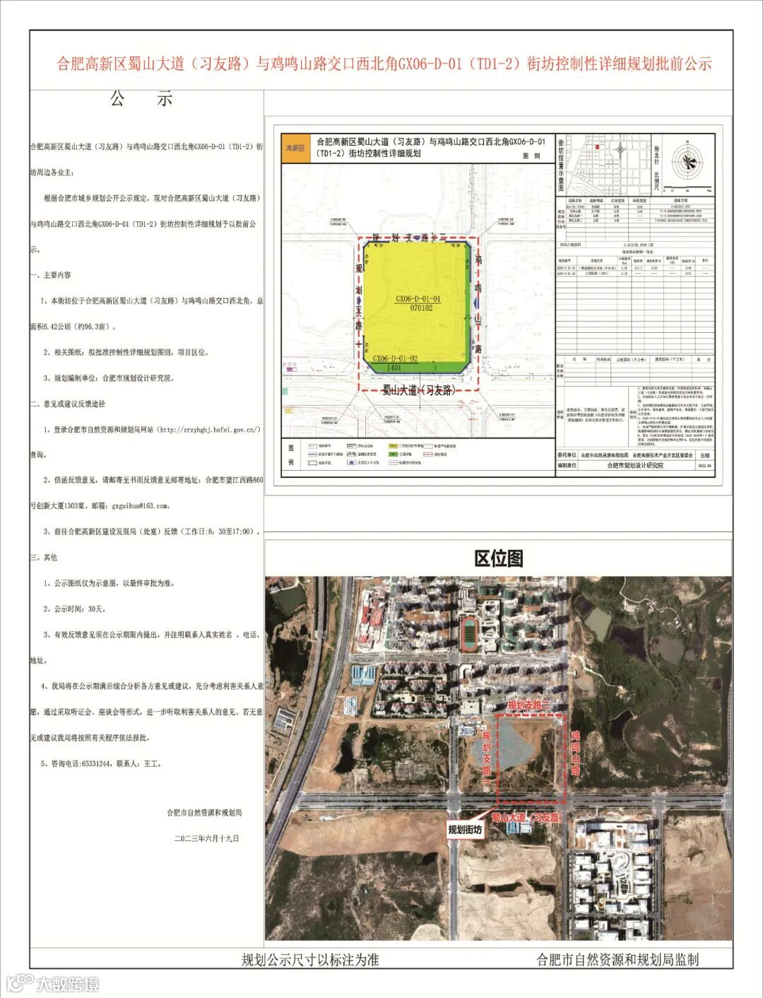 合肥高新区蜀山大道(习友路)与鸡鸣山路交口西北角,街坊控规出炉!