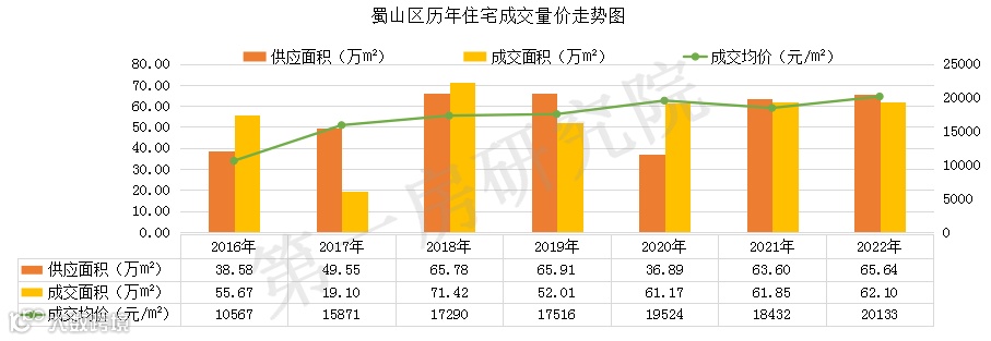 蜀山区近两年供需基本平衡,量价齐升,预计后续将持续回暖提升。