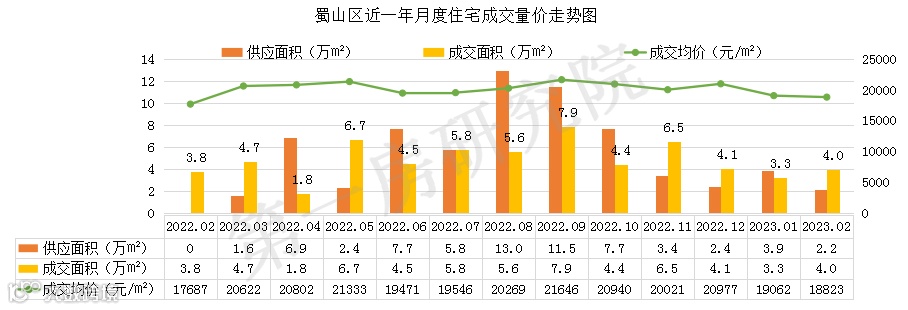 2月份蜀山区成交面积4.0万㎡,同比、环比均上涨,房地产市场回暖初现。