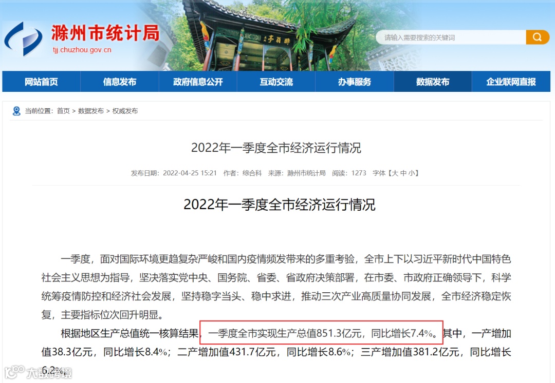 滁州表现亮眼,一季度完成GDP851.3亿元,总量稳居省内“第三城”的同时,增速达到7.4%,居安徽第一。