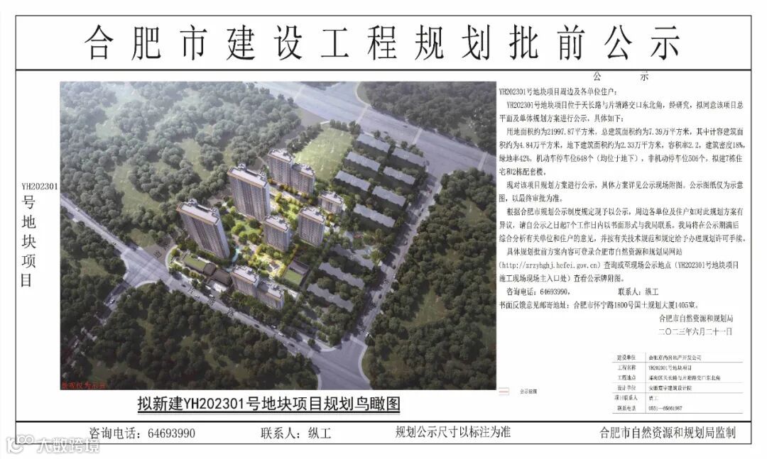 2023年6月21日合肥市自然资源与规划局网站公示了YH202301号地块最新规划!