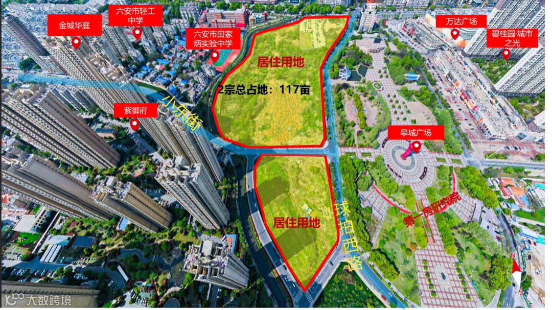 地块2位于老城区中心最繁华地段,绝佳区位,周边球拍西路、皋城路、人民路等路网发达,交通便利。周边有碧桂园城市之光、万达华府等高档住宅小区;成熟并形成集聚商业项目有万达广场、商之都、青云广场等;有田家炳实验中学、皋城中学、轻工中学、六安市城北小学、六安市梅山路小学等六安最优质的教育资源;周边有皋城广场、九墩塘公园、北塔公园等适宜休闲场所;有六安市人民医院、市中医院、六安市第四人民医院等最集中的医疗资源。