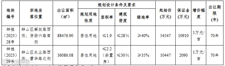 具体公开出让方式由蚌埠市自然资源和规划局于2023年6月12日17:30时前告知取得竞买资格的申请人。