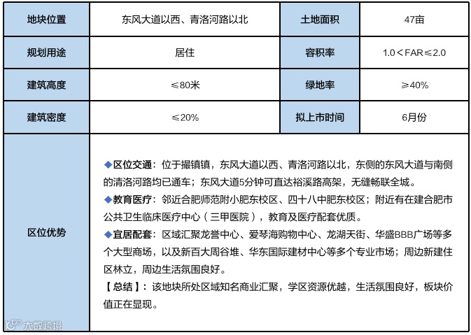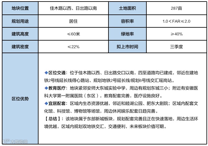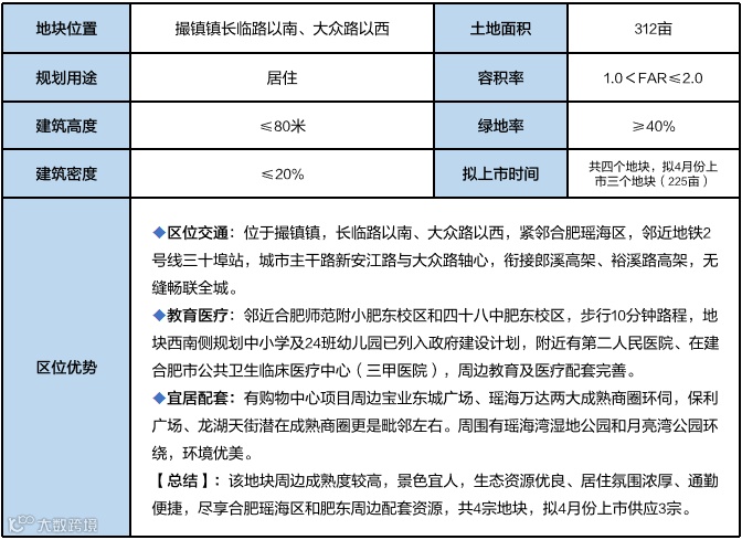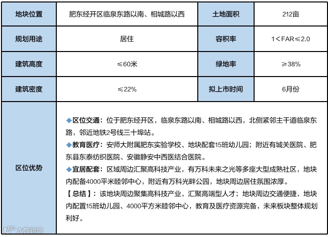 本次推介会推出的地块,从位置、配套等各方面来看,都是相当优越的地块。后期房企成功拿地后,希望能够被打造成高品质住宅,让肥东当地老百姓能够有一个更高的居住舒适度。
