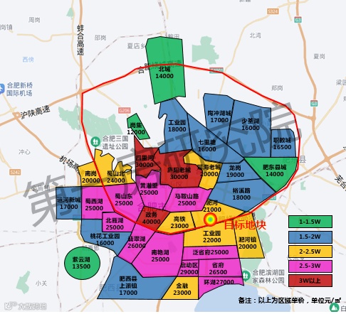 目标地块属于包河区淝河板块,合肥目前热度上升最快的区域之一,周边居住氛围良好,板块库存供小于求,竞品去化速度快。淝河板块目前处在合肥板块价格的中游梯队,并且处于包河区市场发展前沿,各类配套正在逐步落位,因此淝河板块具备巨大的价值潜力。