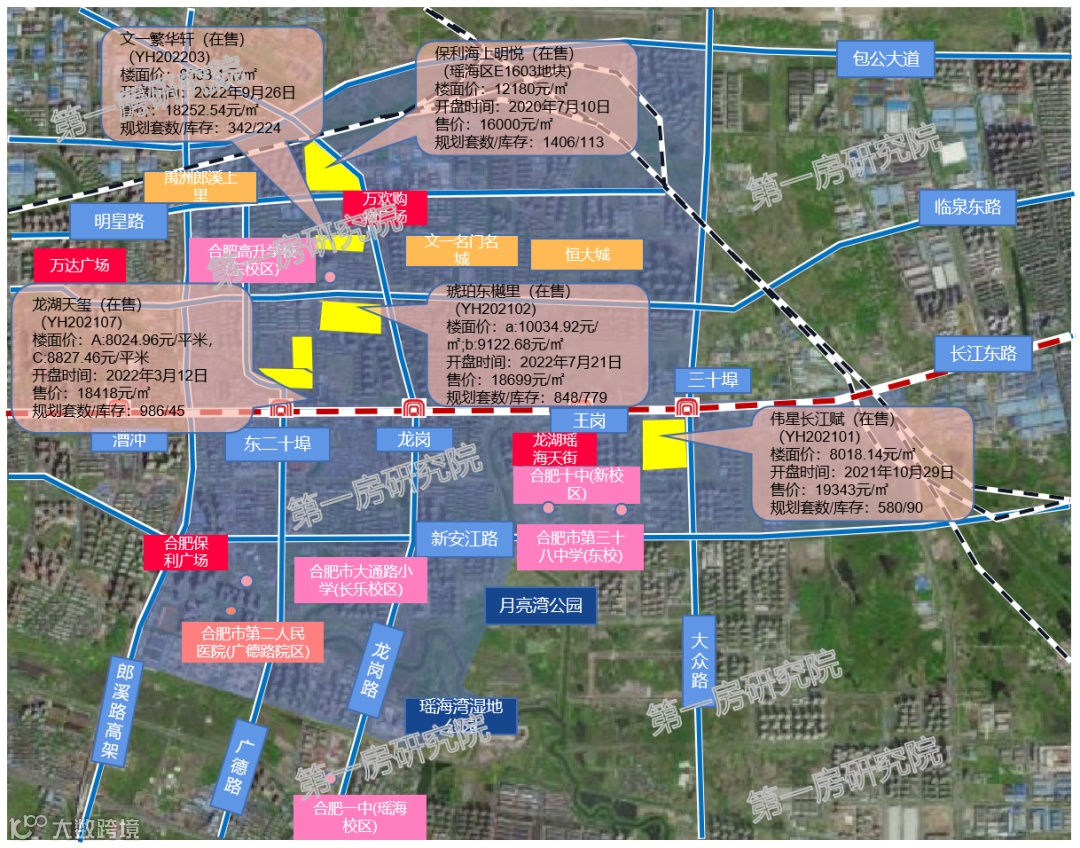 :该板块2022年成交1宗地(YH202203),3月25日,文一地产以总价2.94亿元、单价907万元/亩竞得瑶海区YH202203号地块,地块位于瑶海区丰乐亭路以南、通达路以东,土地面积35.94亩,容积率≤1.6。