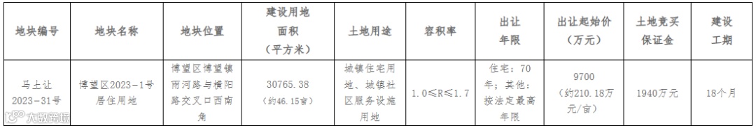 马鞍山博望区暂定6月9日拍卖1宗居住用地,面积约46.15亩