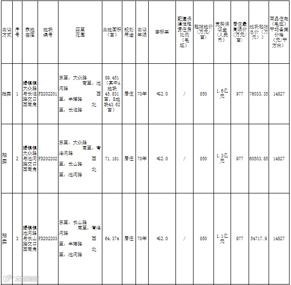 三地块均采取“价高者得+投报高品质住宅建设方案+摇号”的拍卖方式。