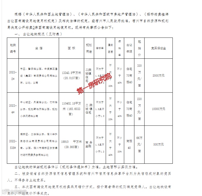 本次宿州出让的两宗居住用地一宗位于城西板块,一宗位于道东板块。其中2023-2#地块东至馨云路,南至三十处西园小区,西至三十处光彩小学,北至三十处西园小区,属于城西板块,面积为20.0157亩亩,1.2≤容积率≤1.6。