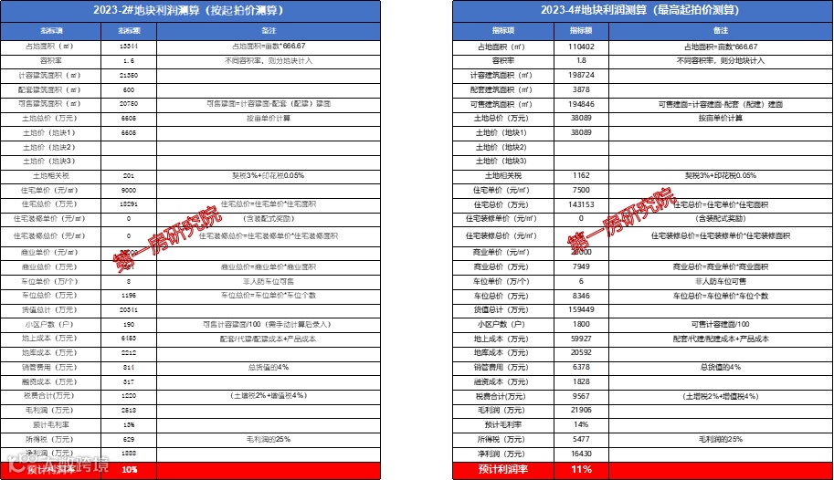 根据测算,2023-2#号地块利润率为10%, 2023-4#号地块则为11%,具有一定的利润空间。