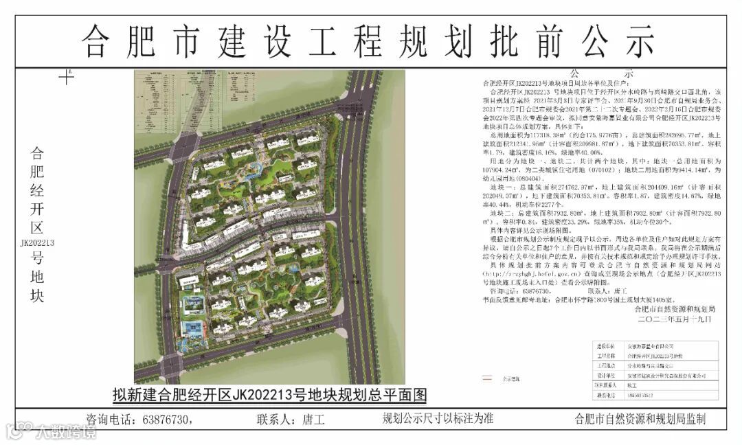 2023年5月19日合肥市自然资源与规划局网站公示了JK202213号地块最新规划!