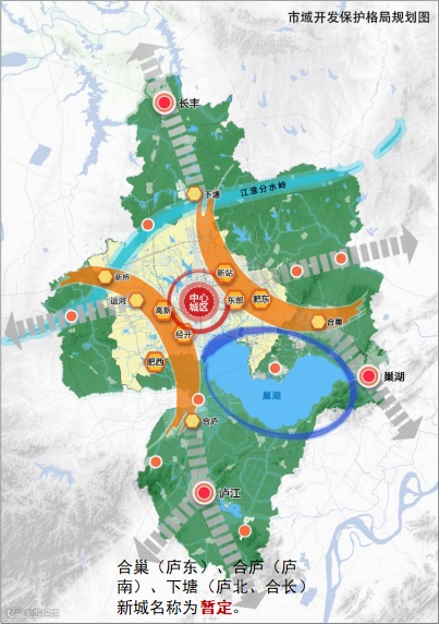 合肥市规划构建“中心引领,两翼齐飞,多极支撑,岭湖辉映,六带协同”的空间新格局,优化多中心、组团式、网络化的城市结构,并积极融入长三角一体化,寻求大中小城市和小城镇协调发展,实现主体功能明显、优势互补的高质量发展。