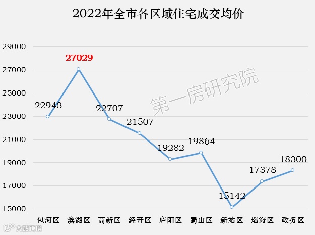 成交均价:在全市限价的背景下,滨湖限价高于其他区域,22年成交均价再次刷新历史高点达2.7万,高出最低区域新站均价80%;