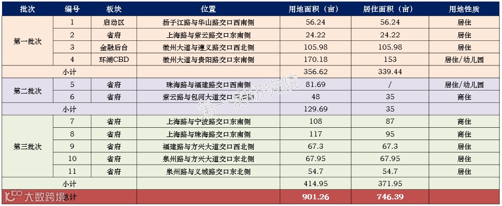 批次供地:一批次356亩,分散供地,四大板块均有出让;二批次仅供两宗约129亩,均位于省府;三批次供应415亩,集中火力在省府待开发区域;