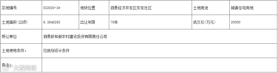 泗县自然资源和规划局国有土地使用权招拍挂出让成交公示