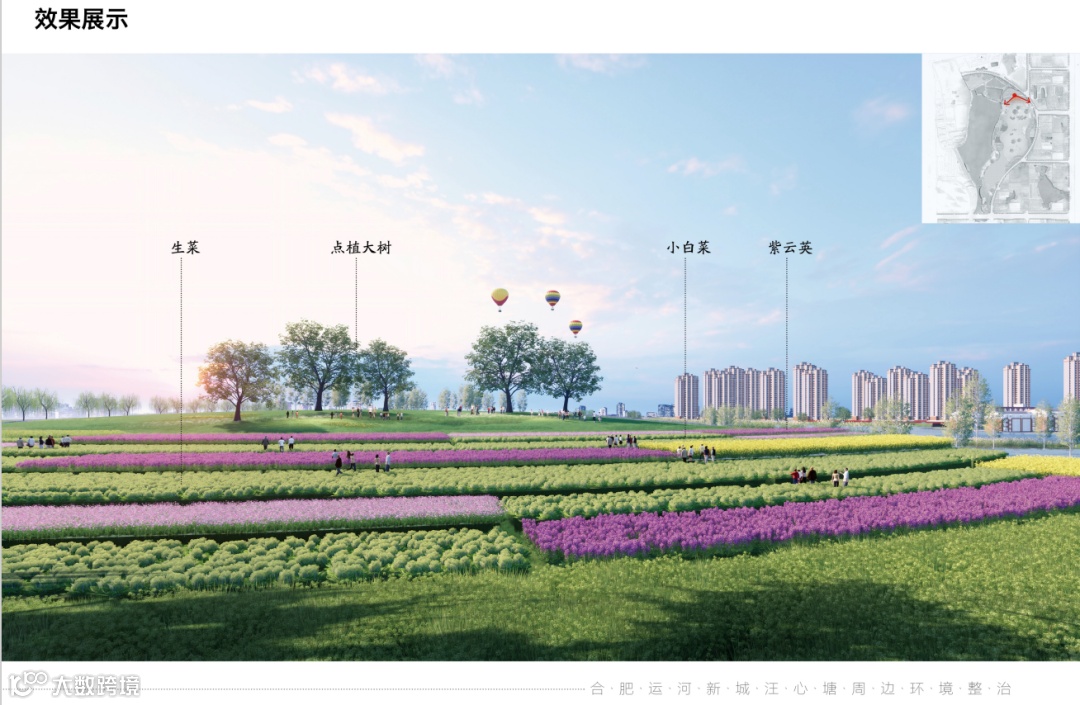 根据官方消息,心湖片区将要建设千亩花海。目前,环境整治施工正处在招标过程中,预计春季可完成施工建设。