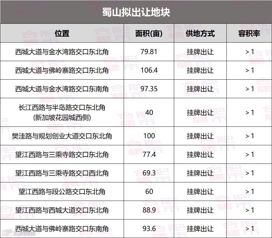 蜀山供应10宗,超800亩优质地