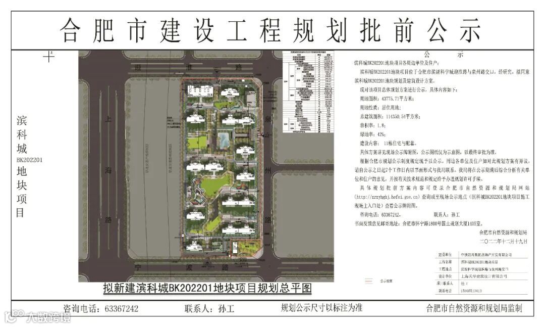 滨湖区中铁璟和院(BK202201地块)规划曝光 ,规划11栋住宅楼,分别为1栋租赁房+10栋12-15F小高层,规划建设543套房。